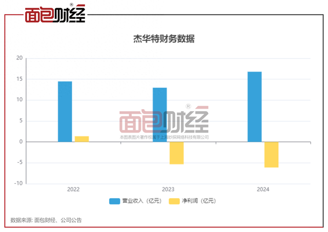 2022-2024年,杰华特营业收入分别为14.48亿元、12.97亿元、16.79亿元,年内利润分别为1.36亿元、-5.33亿元、-6.11亿元,亏损持续扩大。